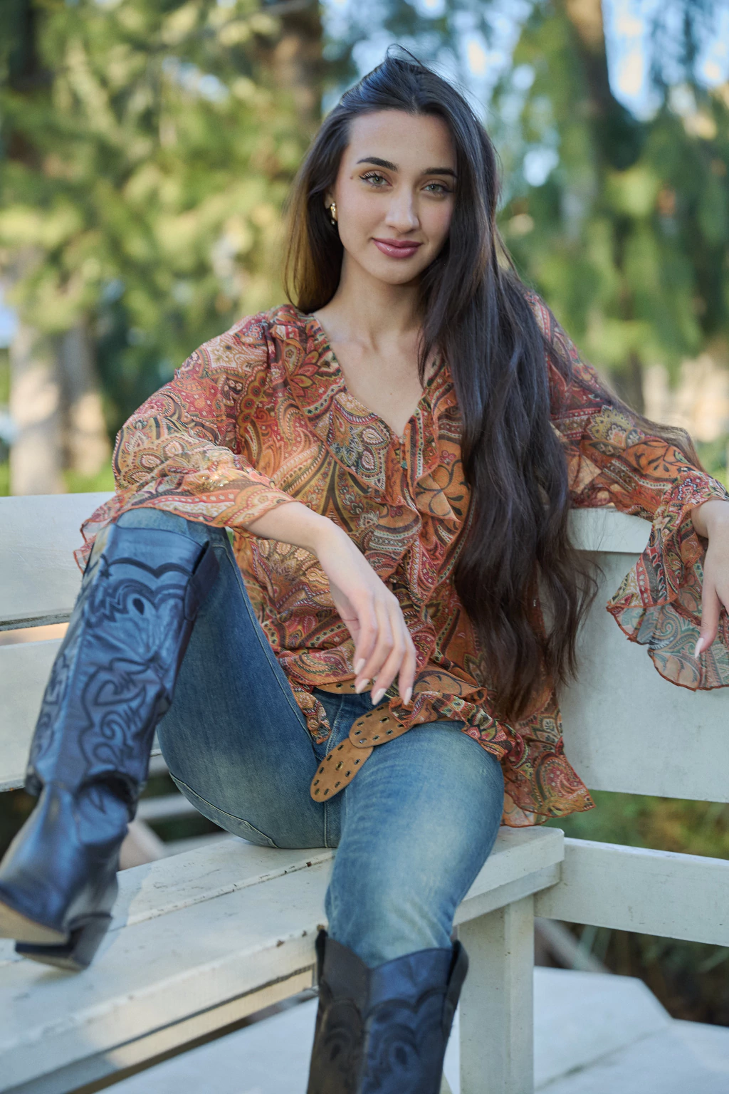 Descubre la sofisticación de nuestra Camisa Farah, confeccionada en suave gasa que aporta un movimiento fluido y una textura delicada, ideal para ocasiones especiales o para realzar tu look diario con un toque de distinción.
