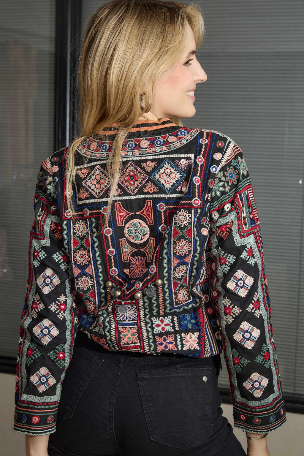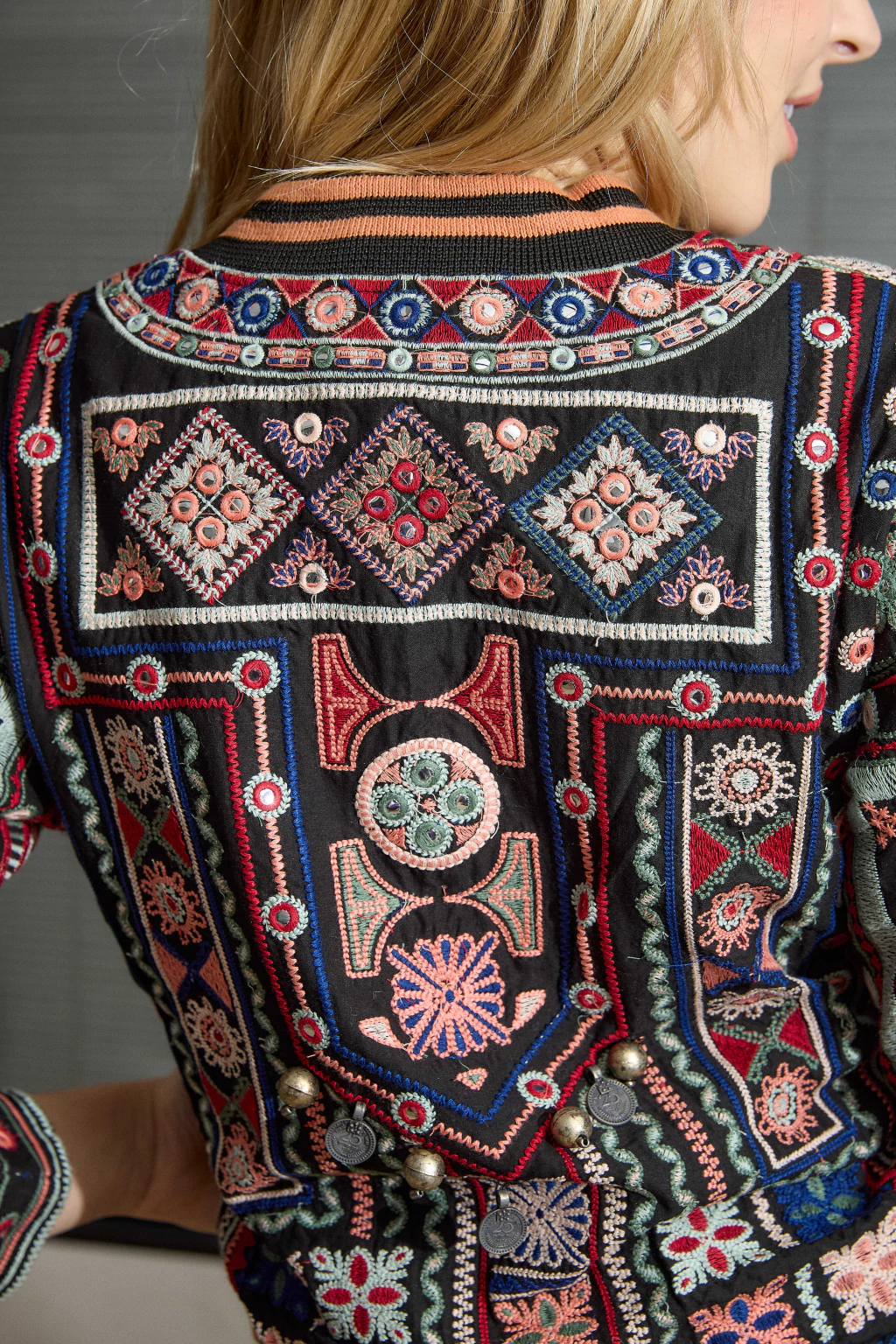 Campera bordada con hilos de colores.