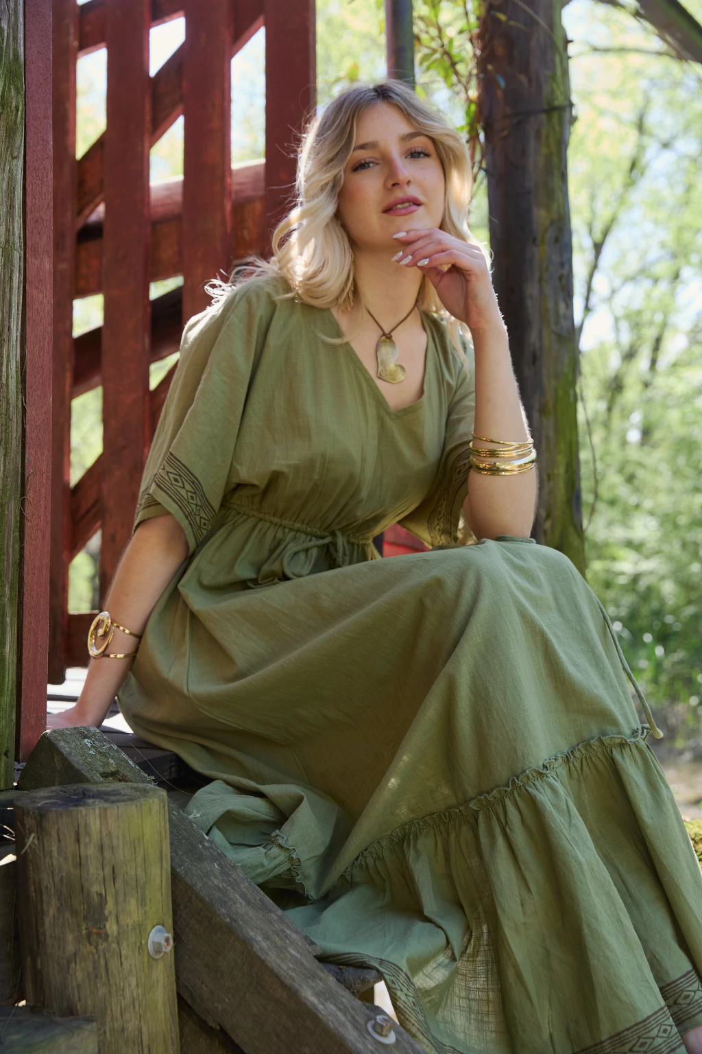 Descubrí la comodidad y el estilo natural del Vestido Krisha, confeccionado en tela de lino fresca que permite una sensación liviana y transpirable, ideal para los días de calor. Disponible en talles M y L, se presenta en colores verde terracota natural, aportando un toque de sofisticación y calidez a tu guardarropa.